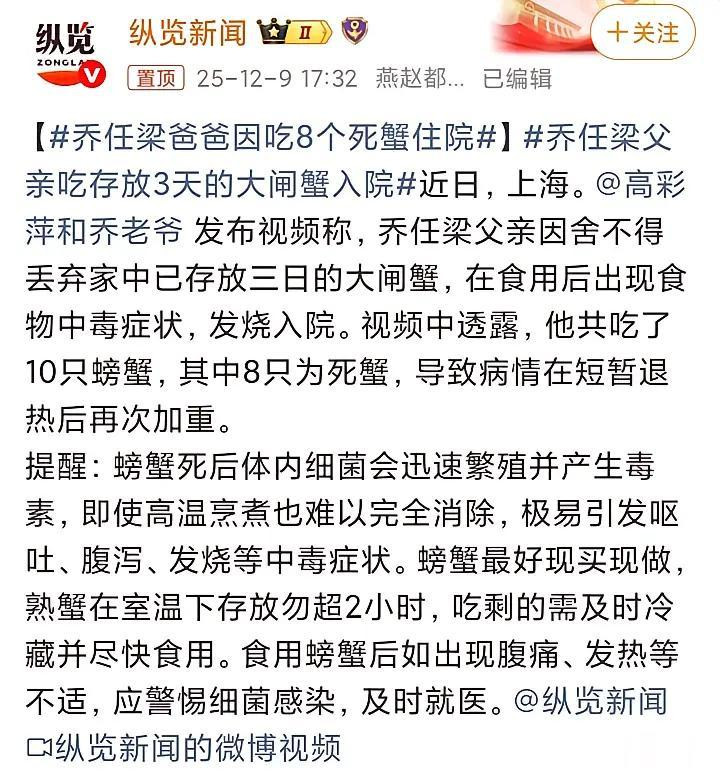 水产海鲜,死螃蟹体内容易产生毒素高温烹煮也难以完全消除他肯定知道,但他还是吃了,大概率就是因为乔叔叔节省,不愿意浪费。
